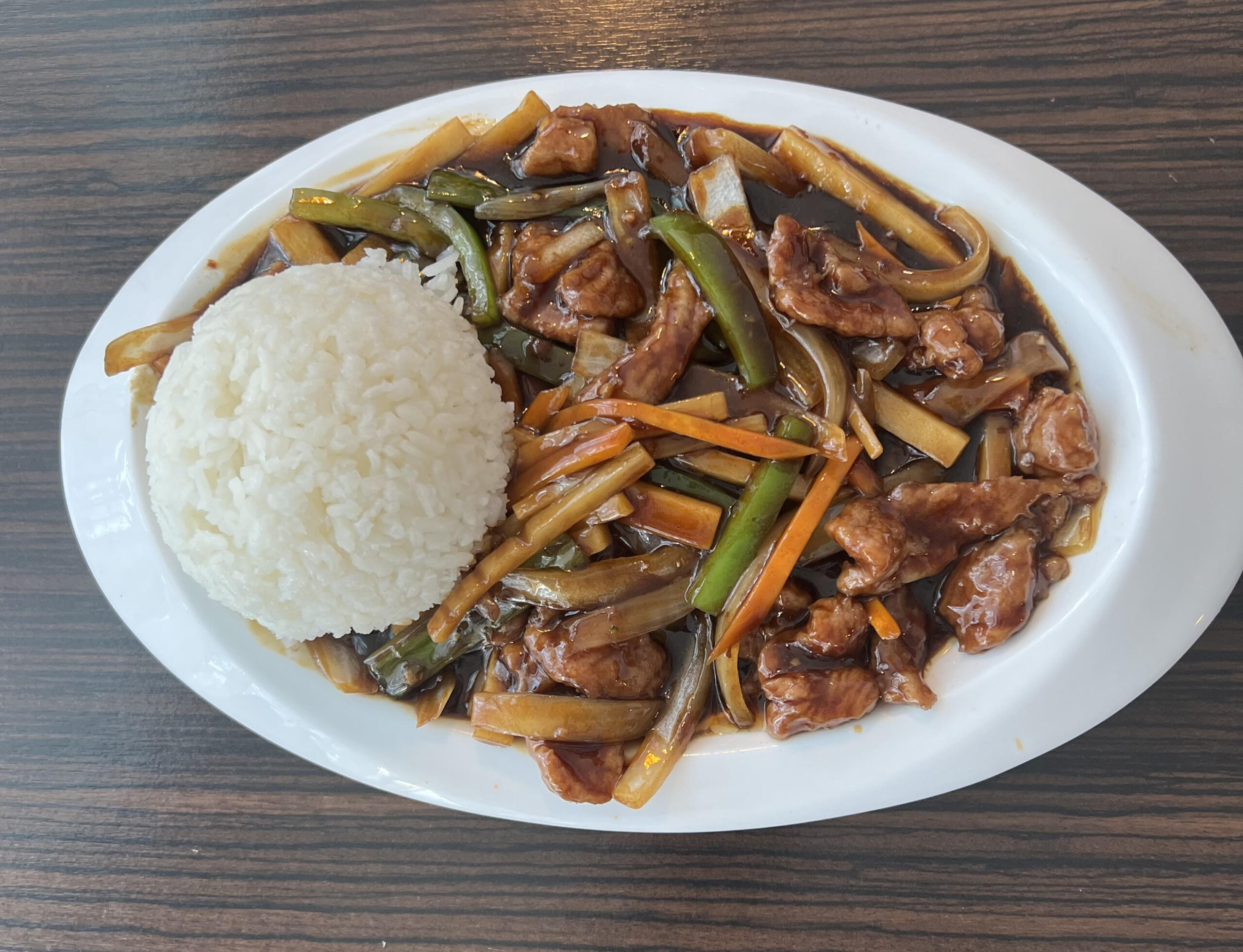 K5. Govedina s čebulo in rižem (kosilo vključuje kislo pekočo juho ali spomladanski zavitek )