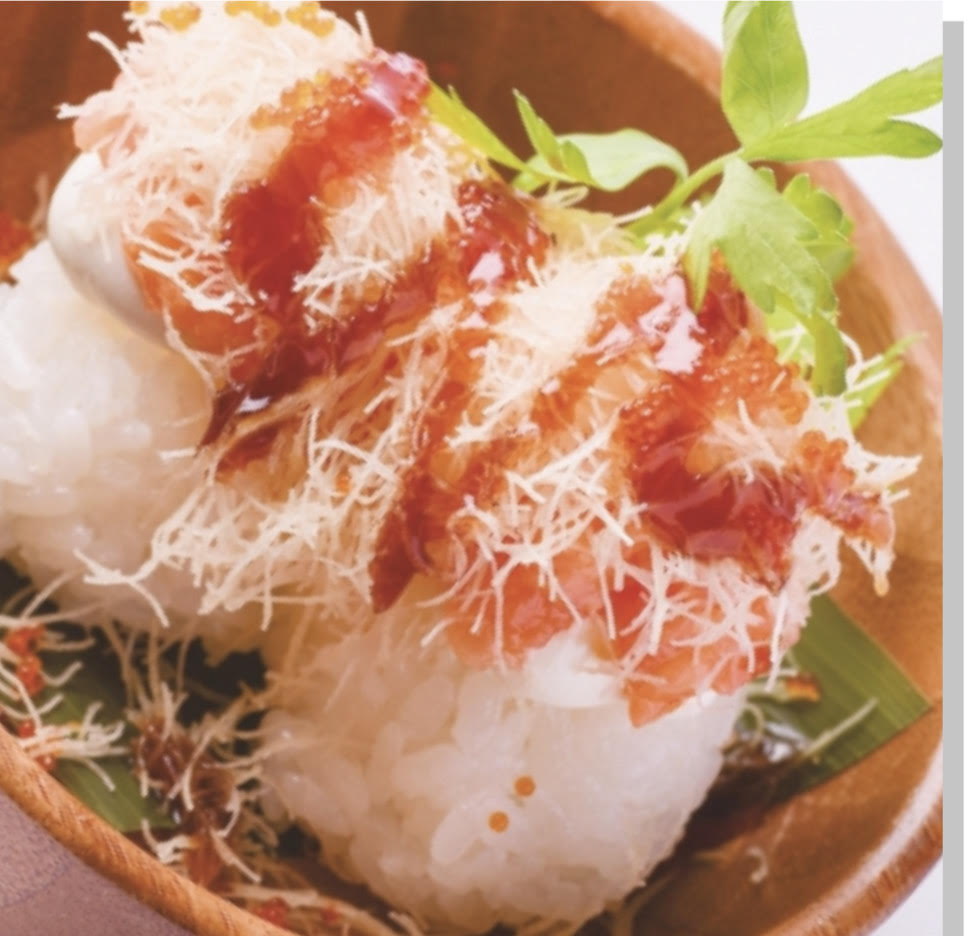 Rižji ugrizi s tartarjem iz rakov in philadelphio